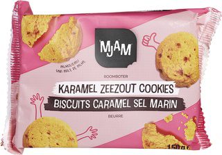 Deze karamel zeezout cookies zijn MJAMMIE! Heerlijk knapperige koekje met het zoete van karamel en een zoute touch. MJAM biedt een breed assortiment koek voor on the go, tijdens een gekke bui of gewoon vertrouwd bij een kop vers gezette thee of koffie.