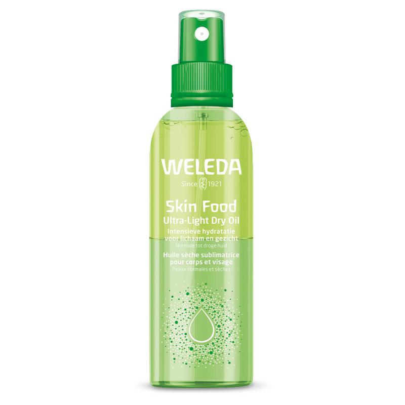 Kan je huid wel wat hydratie gebruiken? Deze Skin Food dry oil van Weleda is een ultralichte 2-fasen spray voor zowel je lichaam als gezicht. Het combineert de luchtigheid van een hydraterende mist met voedende jojoba-olie. Natuurlijk op basis van de bekende Skin Food formule, met driekleurig viooltje, calendula en kamille. Het trekt snel in en het hydrateert en verzorgt de droge huid. Dé musthave voor een stralende huid in de zomer. Spray gelijkmatig op het lichaam en masseer in.