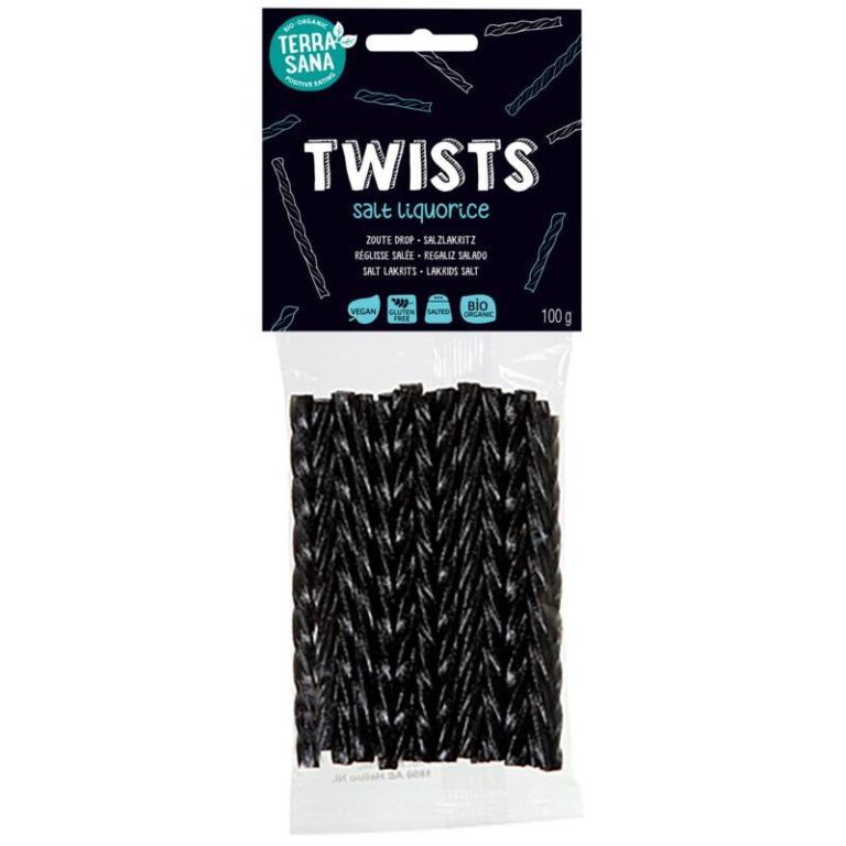 Drop! Soms kun je er geen genoeg van krijgen. Soms heb je gewoon even een boost nodig. Soms wil je het uitdelen aan je (klein)kinderen. Dan is het fijn als de receptuur goed en verantwoord in elkaar zit. Zoute twists zijn vegan en glutenvrije drop. Drop zonder dierlijke ingrediënten (denk aan gelatine) en zonder tarwe of andere glutenhoudende granen. Deze twists zijn een tikje zout, en tegelijkertijd gezoet met blackstrapmelasse. Blackstrapmelasse is een soort bitterzoete stroop die overblijft na het drie